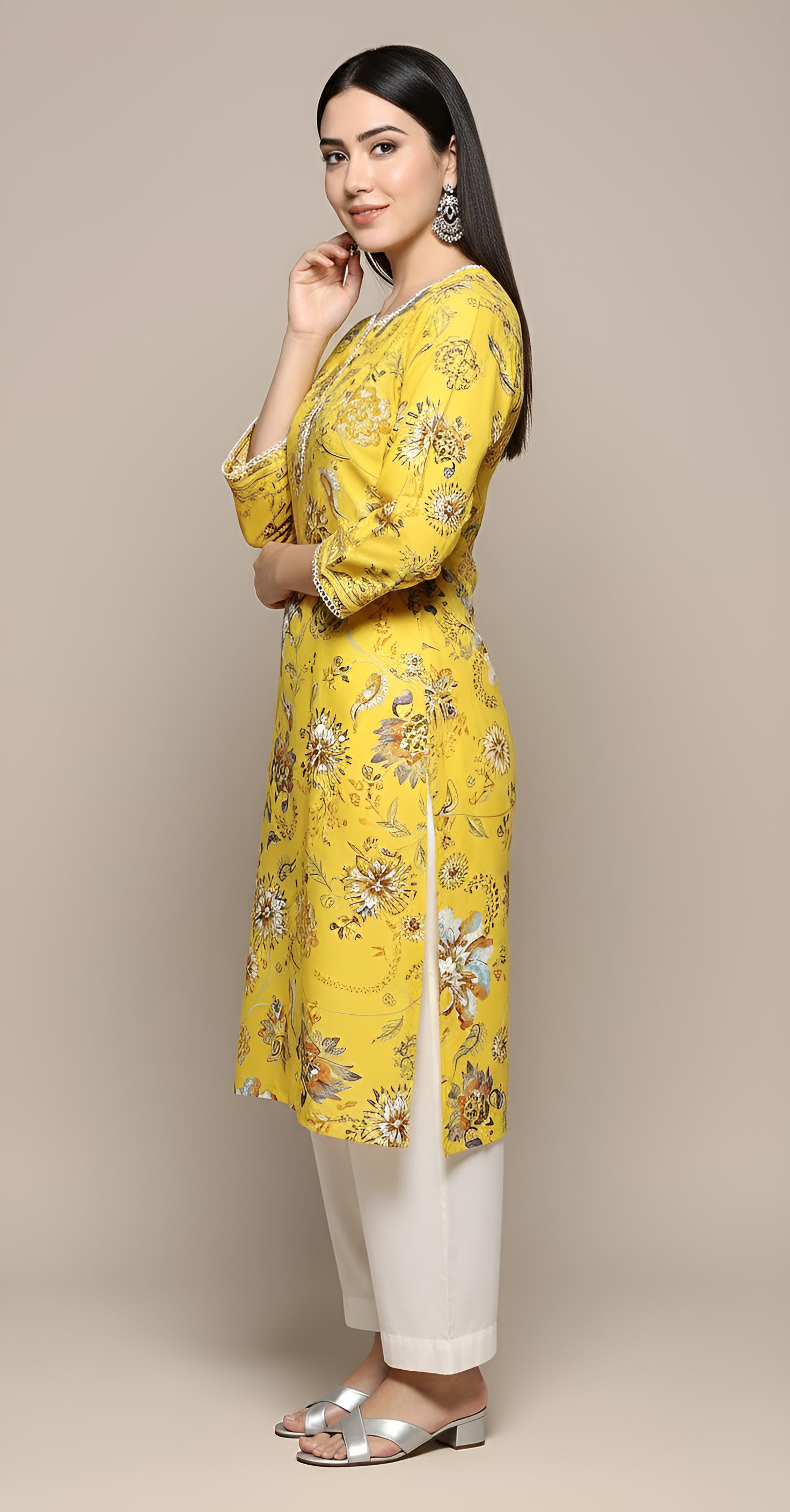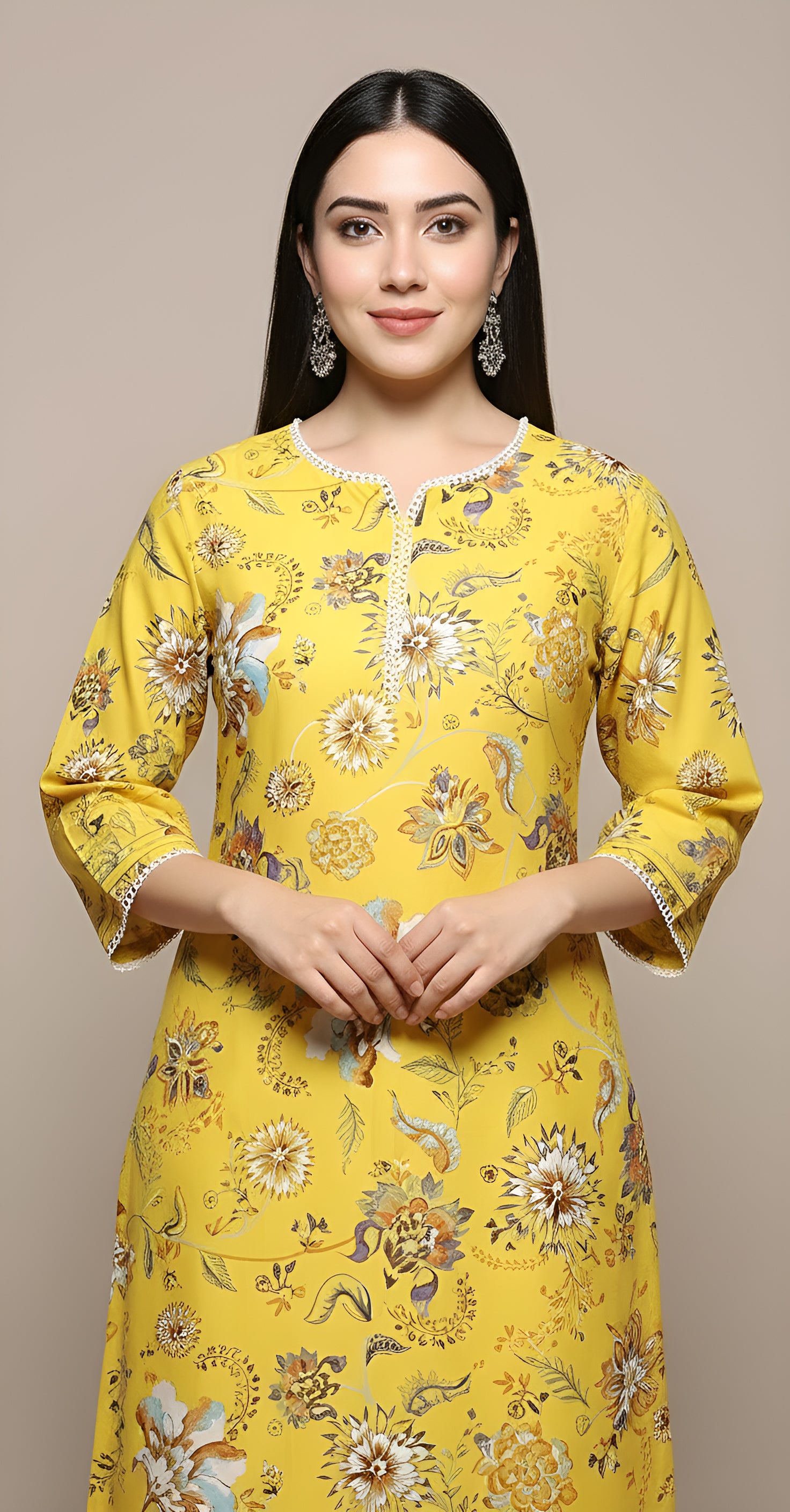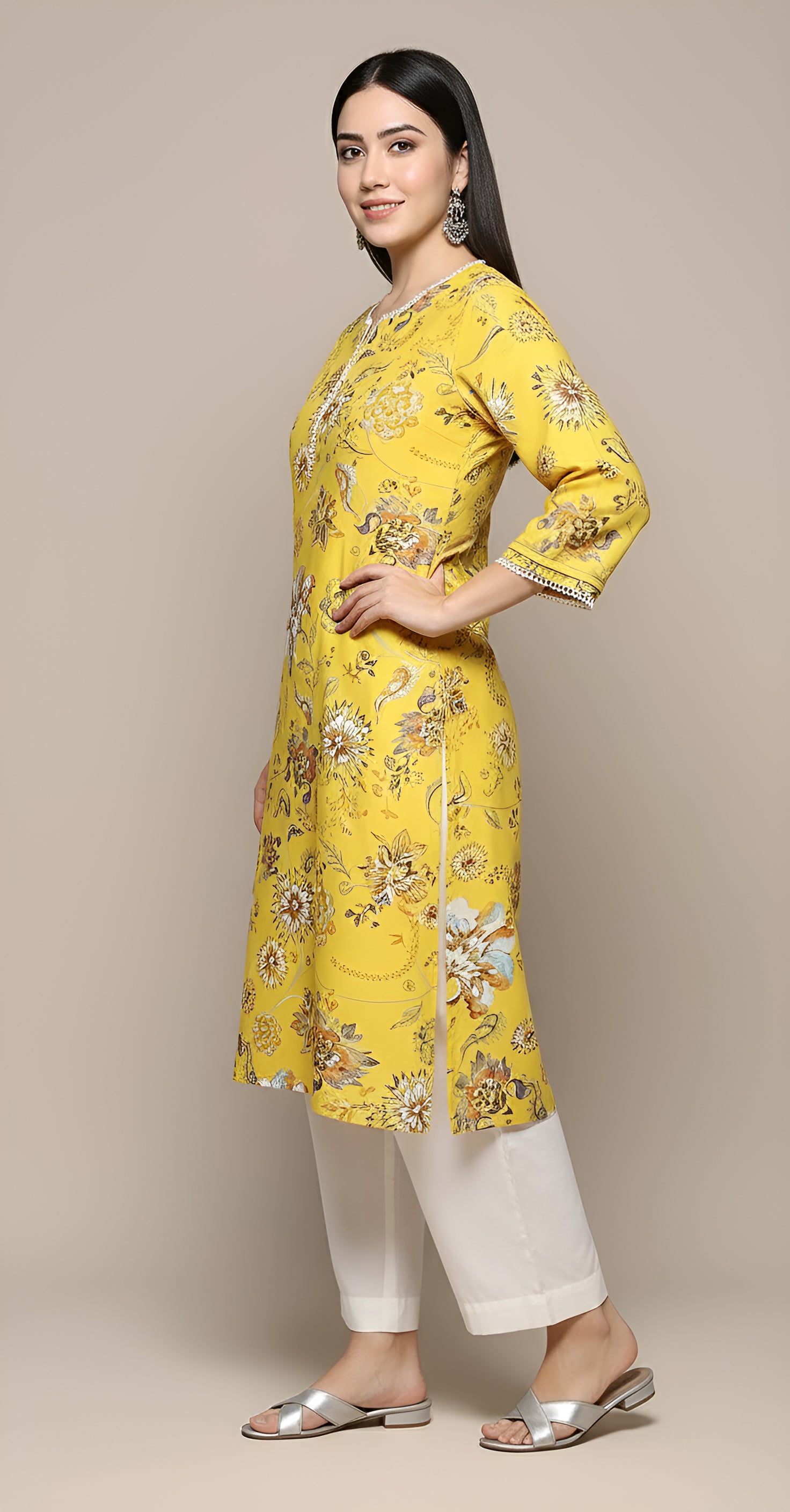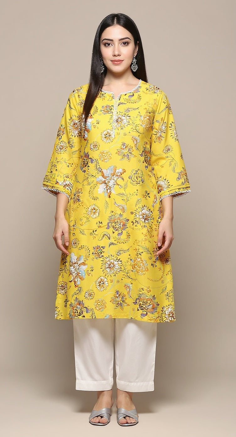 Introducing our bright yellow printed straight kurta Pajama, made with cool cotton - your perfect companion for sunny outings and vibrant summer moments. This stylishly simple piece brings playful energy and relaxed charm to your seasonal wardrobe.